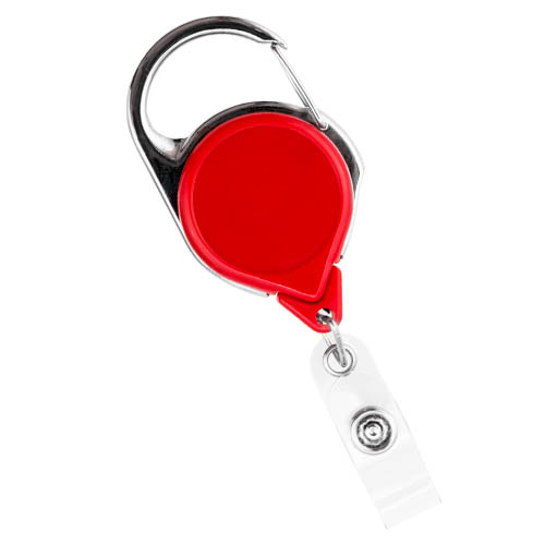 No Twist Carabiner Red Badge Reel w/ Clear Vinyl Strap – Pack of 100 – 152064R